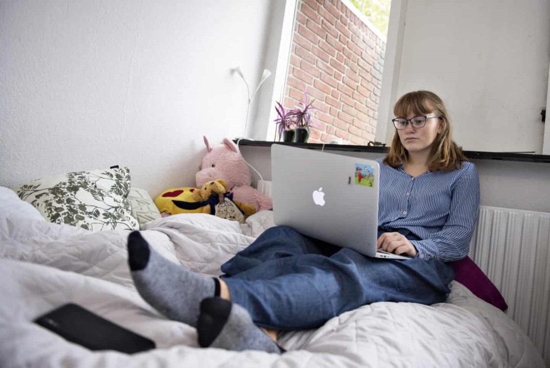 – Hvis jeg ikke lige har overskud til at sidde ved mit skrivebord, kan jeg lægge mig i min seng med computeren på skødet. Det er meget naturligt og bliver ikke så opstillet. Jeg føler, jeg har opbygget et tillidsbånd til dem i min gruppe. Jeg er i hvert fald ikke bange for at fortælle noget til dem, siger hun.