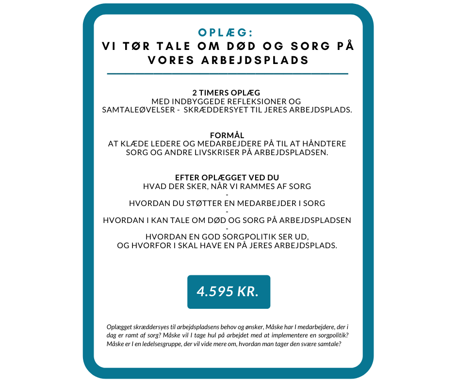 Der er derfor ingen tvivl om, at viden om sorg og sorgreaktioner kan styrke arbejdsmiljøet på en arbejdsplads markant.